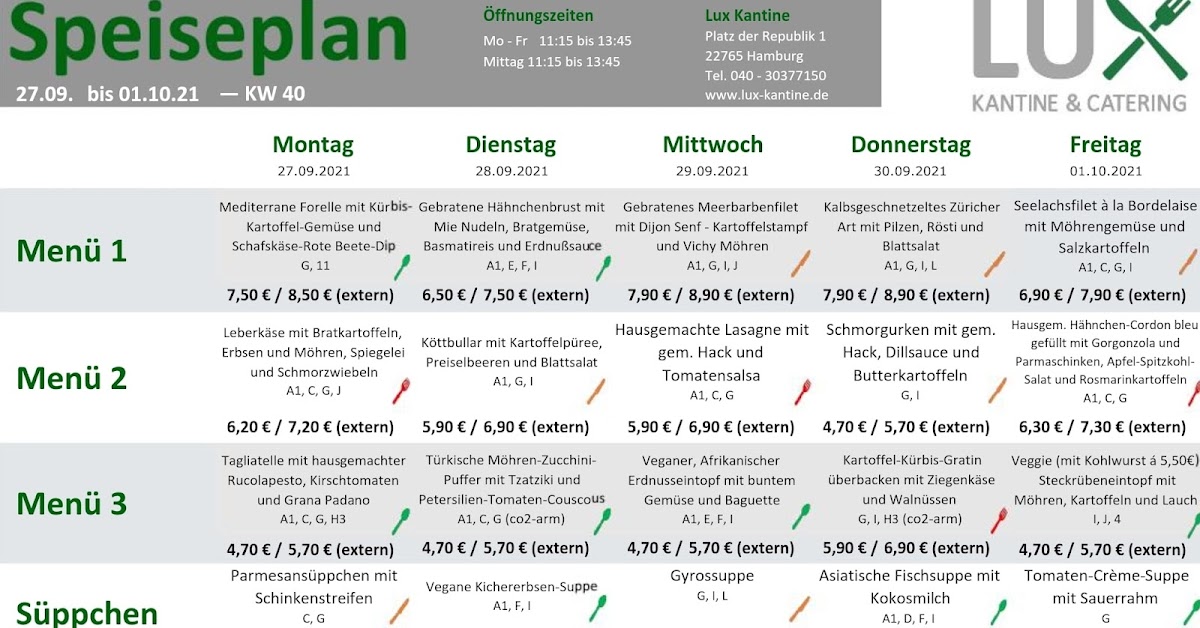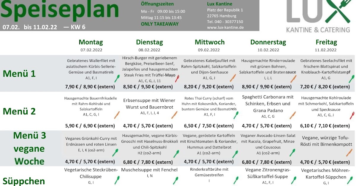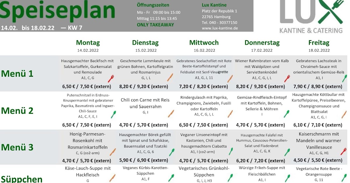 Lux Kantine & Catering serves an enticing range of dishes that showcase the rich flavors of Hamburg and beyond. From the golden, crispy Backfisch served with a side of tangy Kartoffelsalat to the traditional Labskaus that transports you back to grandma’s kitchen, each dish is crafted with quality ingredients. The sensory experience doesn’t stop at taste: imagine savoring a piece of succulent fish that practically melts in your mouth, surrounded by the warm and inviting ambiance of the cafeteria.